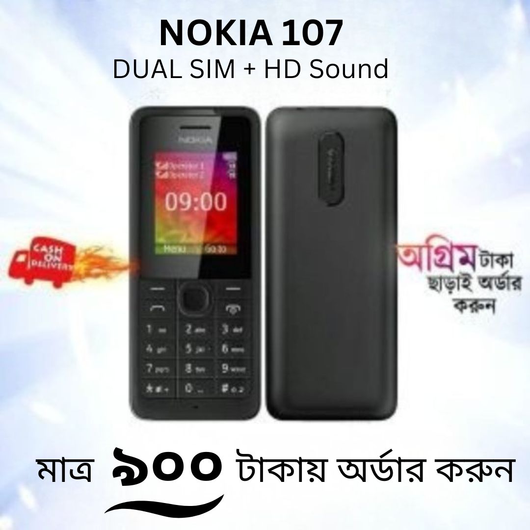 নোকিয়া ১০৭ দুই সিমের মোবাইল এবং এতে মেমোরী কার্ড ব্যবহার করা যায়। দেখতে সাধারন এবং অফিশিয়াল লুকস যে কাউকে মুগ্ধ করবে, স্মার্ট ও সিম্পল ডিজাইন এই মোবাইল এর।